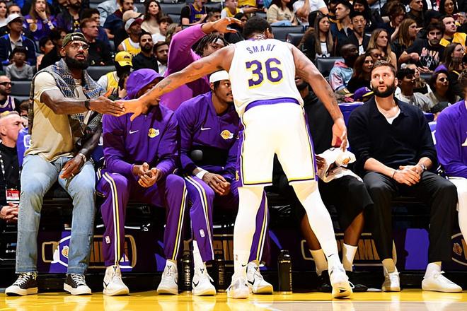 本場(chǎng)比賽中,湖人的先發(fā)后場(chǎng)新援馬庫(kù)斯-斯馬特(Marcus Smart)的表現(xiàn)還是相當(dāng)不錯(cuò)的。斯馬特全場(chǎng)出場(chǎng)26分41秒,投籃9中4,三分線外7中4,得到了11分3籃板4助攻2搶斷1蓋帽的全面數(shù)據(jù),還有4次犯規(guī),正負(fù)值也是達(dá)到了+11。斯馬特在進(jìn)攻端出人意料地展現(xiàn)出了不錯(cuò)的外線投射能力,他也是抓住了機(jī)會(huì)得到了不少的分?jǐn)?shù),為球隊(duì)提供了不少的支持??紤]到之前斯馬特在三分線外的手感并不理想,他在本場(chǎng)比賽中能夠打出這樣的表現(xiàn)也是超出大家預(yù)期的。除此之外,斯馬特也是具備相當(dāng)不錯(cuò)的傳球能力和組織能力,而且他在防守端的表現(xiàn)也依然是極其可靠的。總體來(lái)看,斯馬特在本場(chǎng)比賽中算是打出了攻守兼?zhèn)涞娜鼙憩F(xiàn),他也是為球隊(duì)的這場(chǎng)勝利起到了決定性的作用。