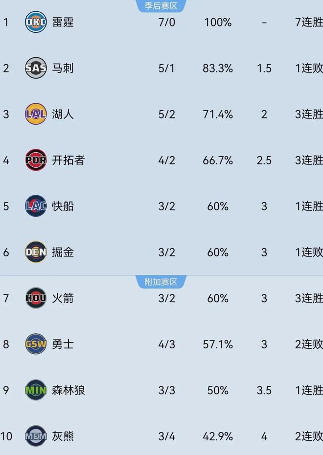 NBA兩極分化:雷霆唯一7戰(zhàn)全勝證統(tǒng)治力 鵜鶘籃網(wǎng)6戰(zhàn)全敗墊底