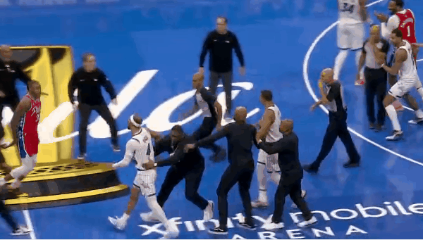 在上半場比賽中,兩隊曾發(fā)生一起沖突:在魔術隊的一次進攻中,兩隊的內線球員溫德爾-卡特和德拉蒙德在三分弧頂搶位過程中發(fā)生推搡,在對峙過程中,德拉蒙德在給了卡特一拳后又擺出了略顯滑稽的拳擊姿勢。隨后雙方球員都參與其中,好在裁判和雙方教練及時介入阻止了這次沖突的擴大。